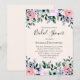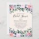 Convite de chá de noiva com um lindo design floral feito com aquarelas. Flores de jardim rosa, roxo e verde.