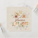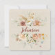 Borda de buquê floral com o sobrenome em fundo de aniagem macia para cerimônia de renovação de votos de casamento.