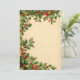 Borda superior de azevinho fluindo com bagas caindo sobre papel envelhecido - ótimo para brunch de Natal, encontros sociais da igreja ou mercados de inverno.