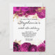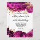Crie seu próprio convite para comemoração de aniversário de marco de na moda. Folhas de ouro de metal falso decorativo e placas gráficas florais românticas cor-de-rosa quente romântica e púrpura de vinho como bordas. Você pode personalizar os estilos de fontes modernos, cores e tamanho, conforme necessário. Altere a cor de fundo conforme necessário. As folhas de luxo são criadas com gráficos digitais.