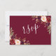 Chique, vintage, em tons de borgonha, com aquarela floral e grafia à mão em branco para cartão de RSVP de casamento. Elke Clarke © Borgonha com acento branco para que seus convidados possam escrever facilmente seus nomes e informações no cartão de resposta. Outras cores disponíveis em www.zazzle.com/monogramgallery. Um rsvp de letra manuscrita simples, porém versátil, para casamentos ou outras ocasiões especiais, como jantares de ensaio, chás de casal, celebrações de aniversário de casamento.