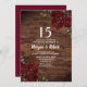 Bordô Rosa Vermelha Rubi Rústica Convite de 15º Aniversário de Casamento