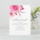 Borgonha e borrão cor-de-rosa queda aquarela convites para brunch florais de casamentos com tipografia de caligrafia com dahlias e folhas de outono.