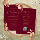 Convite Borgonha e Dourado Código QR Casamento de Outono