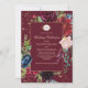 Convite Borgonha | Marinho Azul Floral Watercolor Casament