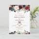 Convite Borgonha Merlot & Flores Azuis Navais Casamento