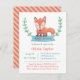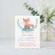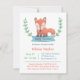Um convite bonito e colorido que tem uma pequena raposa de floresta com uma coroa de folhas e bagas. Design é um trabalho de arte de cor d'água escaneado de Rusty Doodle. No verso está um padrão de faixas inclinadas com uma cor de fundo personalizável. Personalize facilmente com os detalhes da sua parte no espaço em branco disponível, incluindo o título na faixa azul. Design neutro em termos de gênero adequado para as mães esperarem que as meninas e os rapazes!
