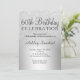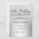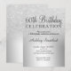 Um design de folha metálica luxuosa e glitter prateada com elegante tipografia caligráfica para um convite de 60 anos.
