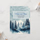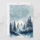 En el frente de la tarjeta, se representa un paisaje invernal pintado con suaves pinceladas de acuarela en tonos azules y grises. Un bosque de copos de nieve cayendo, con árboles esbeltos que se elevan hacia el cielo invernal. Tarjeta elegante para personalizar en esta temporada de invierno.