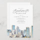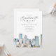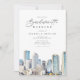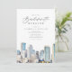 Este convite de solteira e modelo itinerário apresenta uma pintura aquarela do horizonte de Boston, Massachusetts e um itinerário itinerário itinerante editável. Edite facilmente o texto *maioria* para corresponder ao seu evento.