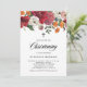 Convide familiares e amigos para o seu evento com este convite bizarro e botânico. Apresenta amarilis branco, vermelho, roxo, pincel e laranja, peônias, mães, ranúnculo e crisântemos com um padrão floral correspondente. As cores são perfeitas para o outono e batizações de Natal. Personalize adicionando o evento, nomes, data, hora, local e outros detalhes.