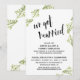 Aqui está uma nova opção para as necessidades de celebração pós-casamento. Sobre um fundo branco editável, coloquei um gráfico de tipografia que diz "nós nos casamos", apresentando uma fonte de letra elegante e moderna em preto. Ao redor deste cabeçalho e do texto estão 3 sprays botânicos em aquarela verde que dançam e curvam-se pelas bordas. Os mesmos gráficos foram colocados na parte de trás em formato ampliado. Use os campos do modelo para adicionar seus próprios detalhes e clique para personalizar ainda mais se desejar fazer alguma modificação adicional. Todas as camadas estão desbloqueadas para permitir todo o controle de posicionamento e dimensionamento que você desejar.