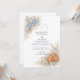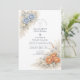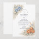 This romantic wedding design features soft blue and peach florals arranged in a delicate garden composition. Inspired by wildflowers and classic botanical illustrations, the artwork blends muted neutrals with airy florals for a timeless, refined look. The elegant layout and gentle color palette make it ideal for couples planning a nature-inspired wedding with a graceful, understated aesthetic that feels both modern and enduring.