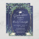 Lindos convites de festa de formatura sem foto, econômicos, impressos em papel leve de 4,5x5,6 polegadas com eucalipto aquarela e folhagens com detalhes em glitter dourado, toques ou boinas de formatura brancas e tipografia de texto moderno e sofisticado contra um fundo azul naval levemente polido. Ideais para orçamentos conservadores e para entrega manual aos convidados. ASSISTÊNCIA: Para obter ajuda com modificação/personalização do design, alteração de cor, transferência do design para outro produto ou se você gostaria de itens coordenados, entre em contato com o designer ANTES DE COMPRAR por meio da guia de MENSAGEM do Zazzle ou envie um e-mail para makeitaboutyoustore@gmail.com.