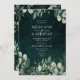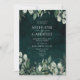 A floresta selvagem é um belo design verde, com folhas de cor aquática rústica contra um fundo verde de caçador escuro. Este tema botânico para um elegante casamento rústico, casamento de verão ou tema florestal evoca romance. A design apresenta um roteiro elegante, rodeado de folhas de cor d'água com tema botânico contra um lindo fundo verde-escuro.