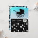 Bonito como um botão, convite para chá de fraldas de bebê carruagem azul e preto.
