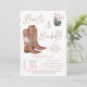 Botas flóricas rosas e Chás de panela borbulhantes e chás de panela borbulhantes com cacto, botas para vaqueiras e alguns arranjos florais cor-de-rosa. Este convite para chás e pontes borbulhantes também apresenta alguns textos de caligrafia moderna e não editáveis e divisores de texto.