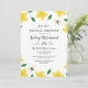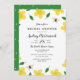Um chá de panela verde e amarelo bonito com botões de ouro desenhados mão, abelhas, e pouco as folhas verdes dispersou em torno de seu fraseio do convite.