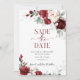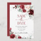O "Burgundy and Blush Pink Wedding Save the Date Invitation" é um convite de casamento elegante e romântico que apresenta uma sombra rica e profunda de burgundy emparelhada com uma cor rosa pida e suave e delicada. O design inclui belos elementos florais que acrescentam um toque de sofisticação e beleza natural ao convite.