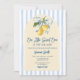 Arch Boho Blue Bow A Sweet Little One Citrus Lemon Baby Shower Blue Stripe Background Invitation