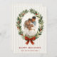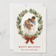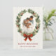 Convite Bow and Greenery Oval Frame Holiday Photo Card
