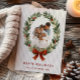 Wrap your holiday greetings in timeless charm 🎀 with this elegant Christmas card design featuring a red bow with gold accents and a watercolor greenery frame. 🌿✨ The soft oval wreath of leaves and berries creates a warm, painterly feel that beautifully complements your favorite family photo. Set against subtle cream stripes, this design blends classic holiday elegance with modern chic simplicity — a perfect way to share heartfelt wishes and cozy festive cheer with loved ones. ❤️