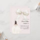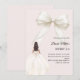 This sophisticated design features a large ivory bow adorned with delicate pearl details, paired with a graceful gown illustration. A soft blush pink colored background creates a modern, refined look that feels both luxurious and unforgettable.