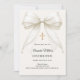 Celebrate your daughter's milestone with this elegant Confirmation invitation. This design features a stunning, oversized ivory silk bow adorned with delicate pearl strands and a central ornate gold cross. It is the perfect choice for a traditional Catholic ceremony or a sophisticated religious celebration for a young girl.