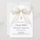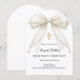 Elegant arch shaped First Holy Communion invitation featuring an ivory bow with pearl details and a gold cross. This personalized communion invitation is perfect for celebrating your daughter’s First Communion with a timeless and graceful design.