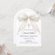 The soft ivory ribbon bow and delicate pearl accents create a sophisticated look, while the unique arch shape adds a modern and elegant touch. Easily personalize with the child’s name, ceremony details, and RSVP information to create a beautiful invitation for this meaningful religious milestone.