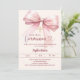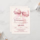 A soft cream colored background, decorated with a pink large bow and a golden cross. Personalize and add a name and details details.