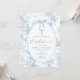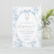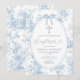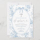 Elegant Something Blue Vintage Toile Baptism Silver Glitter Cross Floral Invitation