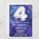 Garoto azul branco 4º Aniversário convite para meninos 4 convite de aniversário para um menino azul roxo com escrevendo moderno de escrita e balões de folha divertida.