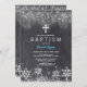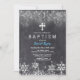 Elegante, design único com flocos de neve brancos, luzes coloridas de cordas, sobre fundo do quadro. Use a ferramenta Personalizar para adicionar suas informações, alterar a cor da fonte. Para itens correspondentes, visite minha coleção de celebrações Baptism/Christening.