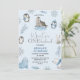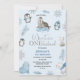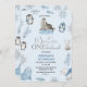 Meninos Blue Artic Winter Onederland primeiro aniversario Convite para meninos doces inverno one derland convite de aniversário com vários animais árticos sobre um fundo azul claro.