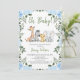 Convite Boys Blue Rosa Foliage Safari Chá de fraldas