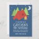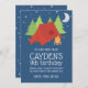 Camping de Meninos e S'mores convidada para o aniversário com tenda vermelha e fundo estelar