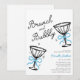 Saúde à noiva! Este brunch azul e este convite à bolha apresenta uma arte desenhada à mão no champanhe e uma escrita divertida, perfeita para um chá de panela divertido.