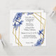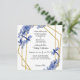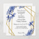 O fundo branco simples, com um design de convite em formato quadrado, com uma estrutura de ouro GEOMETRIC para um toque moderno, é combinado com trabalho de arte de aquarela pintada manualmente, inspirada por uma bela e antiga cerâmica chinesa. Marinho, flores azuis e brancas de cobalto, padrões de folhas de rolagem e libélulas foram todos pintados em vários tons de azul no estilo decorativo da cerâmica de porcelana. Um conjunto completo de produtos está disponível para compra na coleção. Audrey Jeanne Roberts, Copyright todos os direitos reservados.