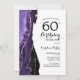 Roxo, branco e ouro agata 60º convite de aniversário. Elegante design moderno com aquarela agate marble geode background, faux glitter gold e typografia script font. Trendy convida o cartão perfeito para uma comemoração de dia das mulheres na moda. Impressos convites Zazzle ou modelo de impressão digital instantânea para download.