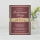 Se as circunstâncias impedirem a comemoração habitual, conecte-se com a família e os amigos a uma distância segura com um na moda ou um grupo de aposentadoria de drive-through! Todo o texto neste modelo é simples de personalizar para um desfile de carros distanciamento social ou evento de videoconferência com zoom virtual com bate-papo online na internet. Também é possível incluir uma mensagem pessoal, se necessário, devido a um cancelamento ou adiamento. O design de burgundy, branco e ouro apresenta um fundo ombre moderno, borda falsa e listras, caligrafia elegante com script e deco de arte vintage inspirado na tipografia. Observe que o vermelho de marrom e o ouro são impressos em cores, e não em folhas metálicas. Este modelo de convite está preparado para uma aposentadoria, mas também pode ser para uma festa de despedida.