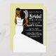 Este chá de panela elegante apresenta uma noiva afro-americana vestindo um vestido branco montado sobre fundo preto e ouro. Envie este convite fofo para sua família e amigos. Sinta-se à vontade para personalizar este convite alterando o texto, a fonte e a cor.