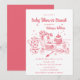 Convite para Chá de fraldas de Mão Branca, Rosa, Desenhada Mão