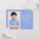 Um elegante Convite à Primeira Comunhão que apresenta uma grande foto solteiro. Os convites de fotos fazem maravilhosas guardas que os destinatários podem enquadrar ou colocar em seus livros de recortes. Este convite azul e branco apresenta um texto branco sobre um fundo azul suave. Todo o texto é editável.
