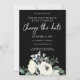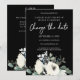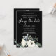 Convite Branco & Azul Poeira Floral em Preto Mude a Data