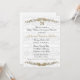 Elegante convite de festa de 50º aniversário com borda superior e inferior de rosa dourada com relevo em fundo branco com aspecto de renda. Os convites vêm completos com envelopes e escolha de papel. Também disponível na cor bege.
