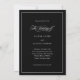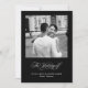 Este elegante convite de casamento preto mostra o estilo clássico do velho mundo com caligrafia romântica e sua própria foto pessoal. A parte de trás do cartão mostra todos os detalhes do seu casamento, cercado por uma delicada estrutura branca moderna. Ponha o tom para o seu luxo e sofisticado casamento italiano inspirado nesta design minimalista e elegante.