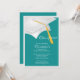Parta seu direito do evento com nosso boné branco na moda & à moda do formando com com uma beira branca ajustada em um convite da festa de formatura do fundo do azul de turquesa. Aperfeiçoe o convite da graduação para uma conclusão do ensino secundário ou uns formandos. Apenas encha dentro sua informação adicionam sua foto e você é todo ajusta-se para ir. Visite nossa loja em www.celebrateitgraduations.com para uma grande variedade de convites da graduação! graphics©delightful-doodles