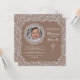 Este convite de fundo de chocolate de leite tem uma areia branca, uma borda de rendas e uma janela fotográfica de rendas. Apresentado aqui como um convite batizante, é adequado para a maioria das ocasiões. A cruz pode ser arrastada para qualquer local, maior ou menor ou eliminada. O cartão é fácil de personalizar com seu texto, fonte, cor da fonte e escolha de seis tipos de papel. Não exatamente o que você está procurando? Todos os nossos produtos podem ser personalizados para atender às suas necessidades sem custos adicionais. Basta entrar em contato conosco em askcottonlamb@gmail.com Coordenando os produtos disponíveis: Convite à janela de fotos local (Retangular), Cartões de agradecimentos de Pilar de rendas