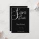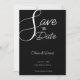 Anuncie seu casamento em estilo com este clássico cartão preto-e-branco "Salvar a Data". Apresentando um design minimalista e uma fonte elegante de script, esta placa exude sofisticação e beleza eterno. Perfeito para temas de casamento modernos, formais ou monocromáticos. Personalize-o com seus nomes, data e local para um toque verdadeiramente exclusivo.